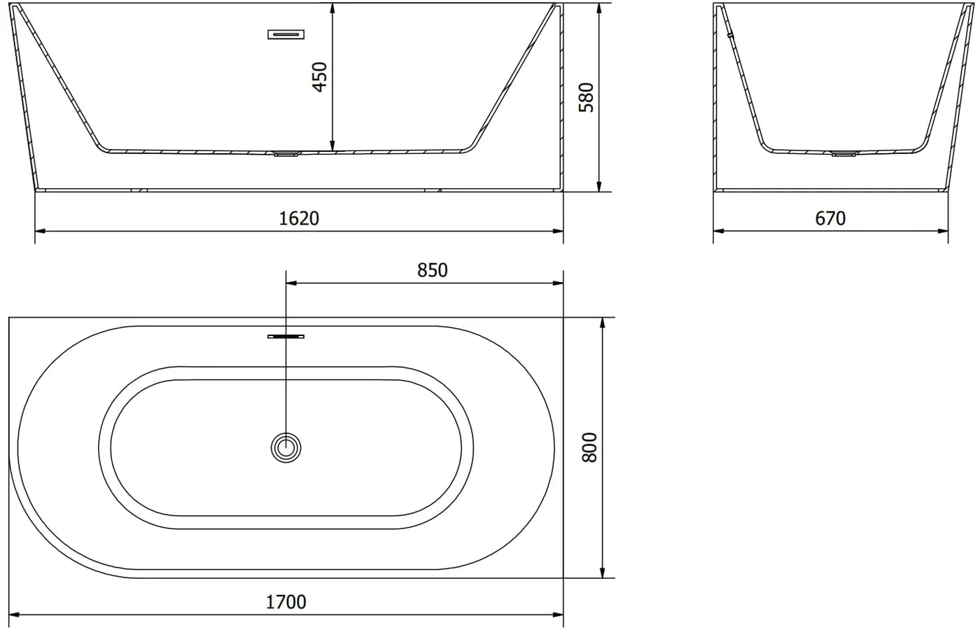 • 1700mm (L) × 750mm (W) × 580mm (H) – Extra length for a more spacious soak.
