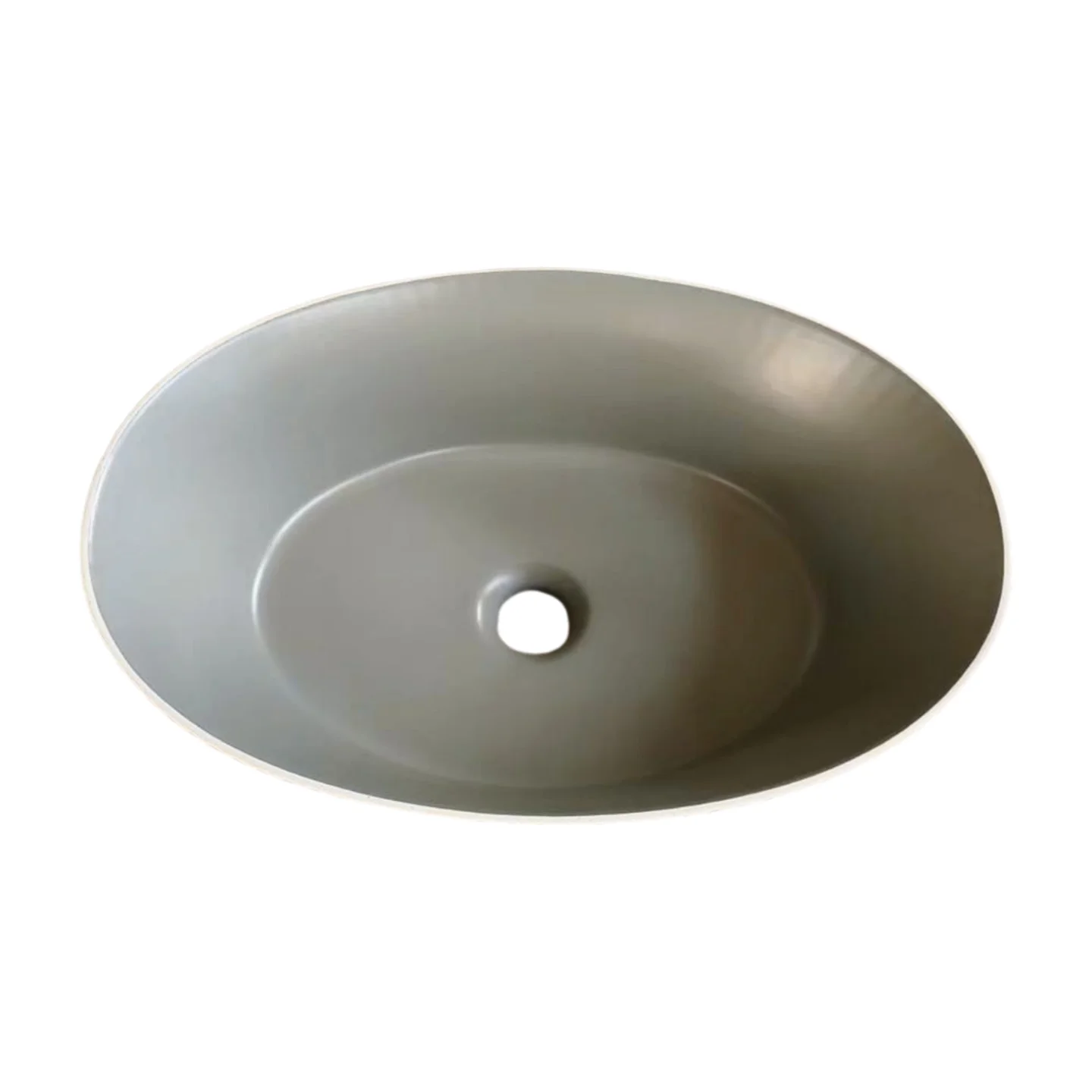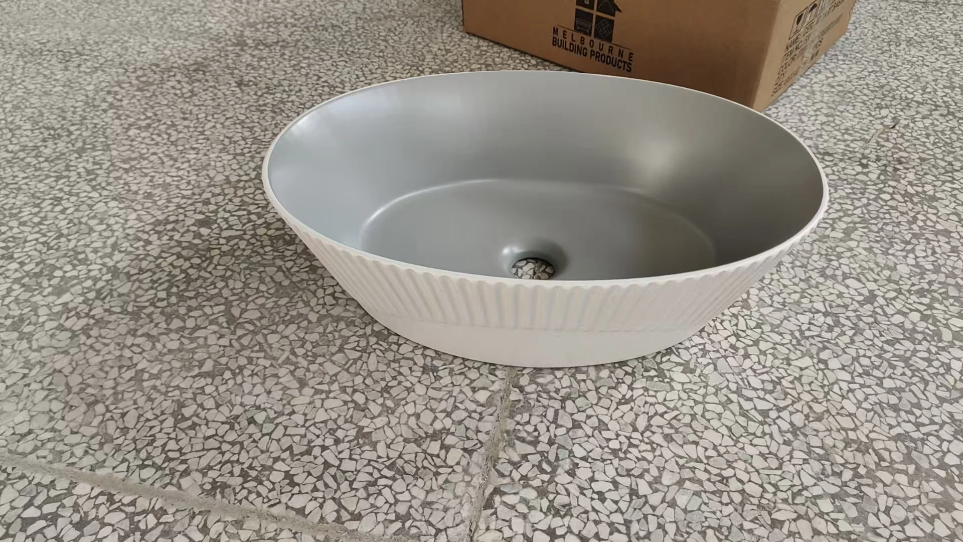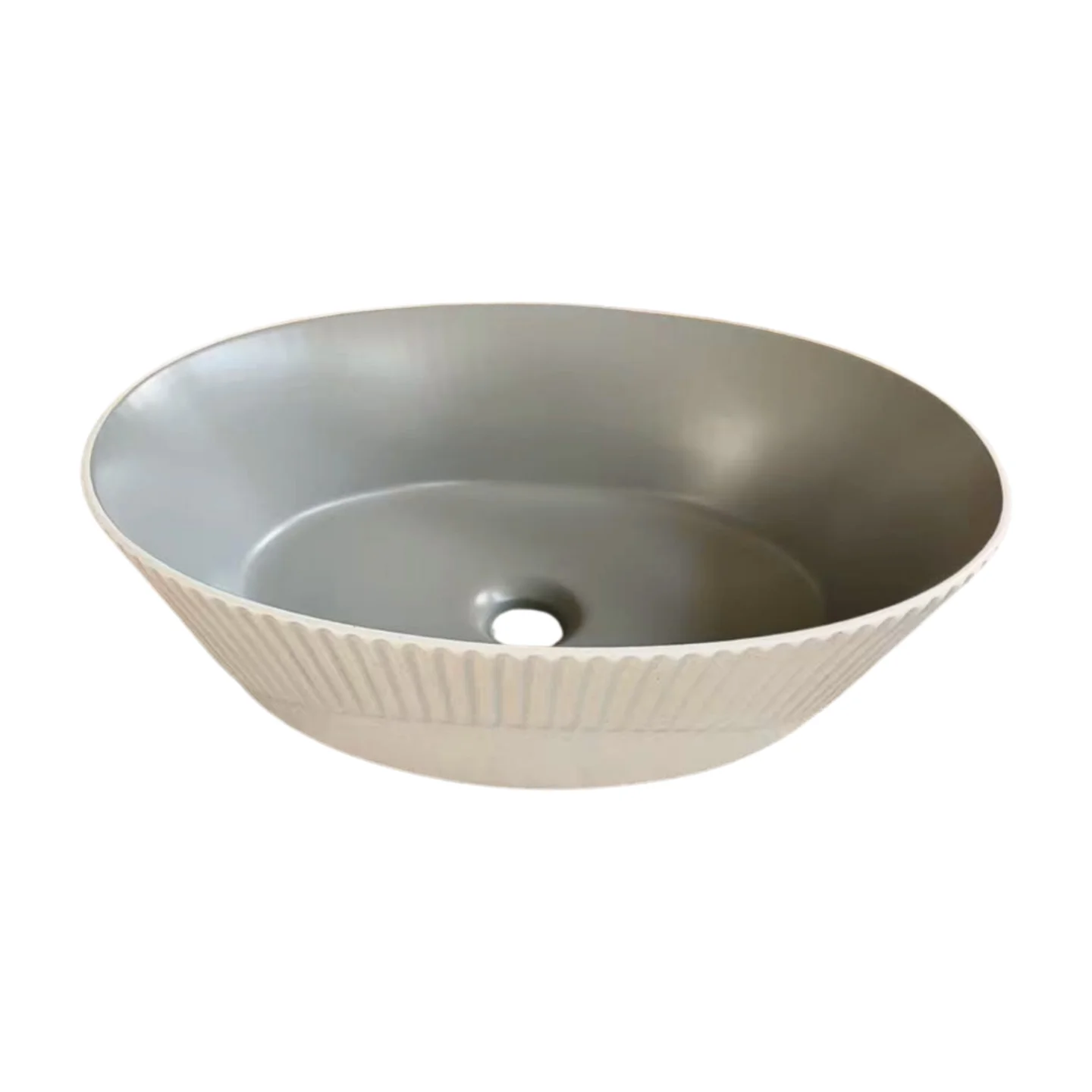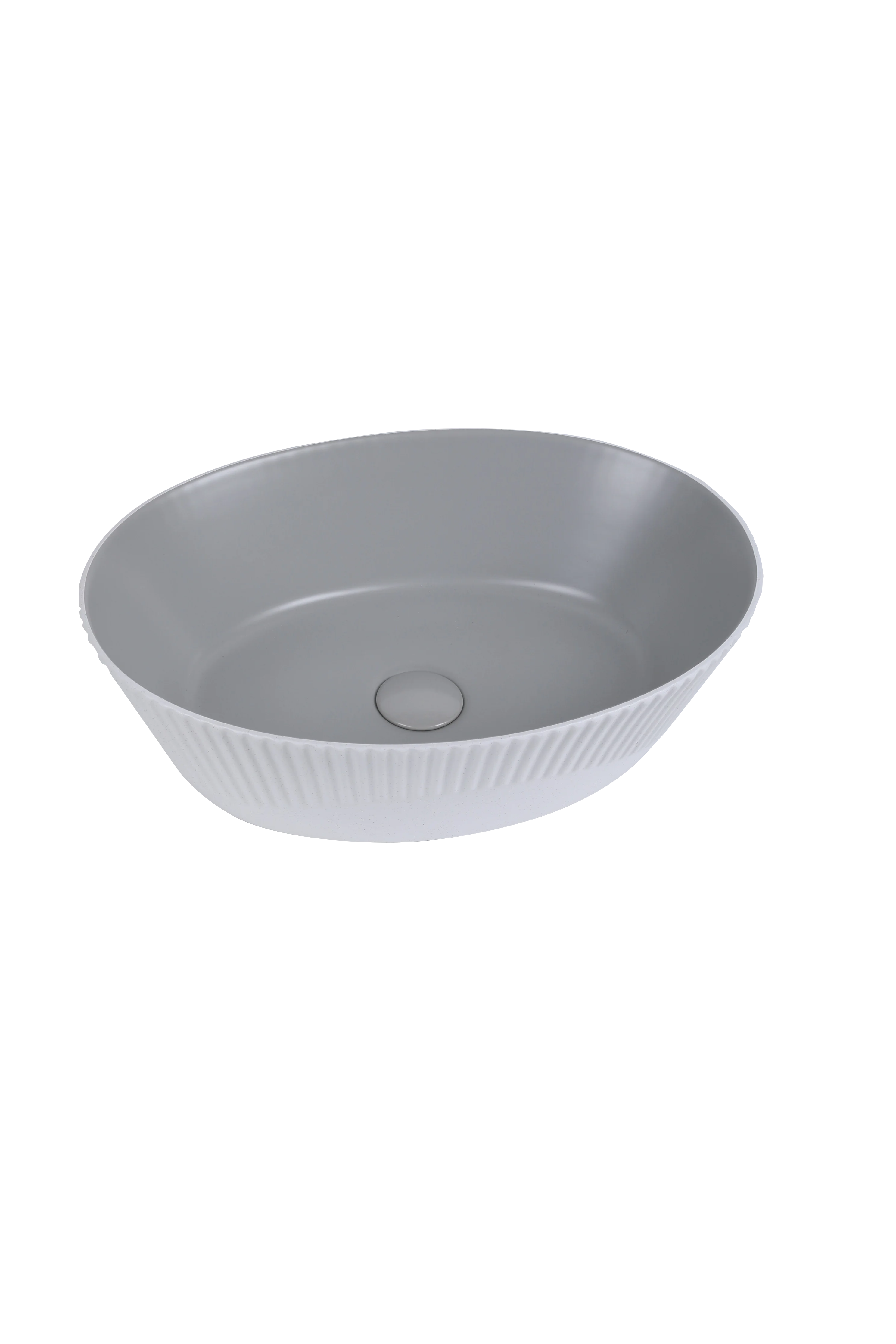 Enhance your bathroom’s aesthetics with this beautifully crafted oval ceramic countertop basin, designed to bring elegance, durability, and modern style to any space. Featuring a matte white ribbed exterior paired with a smooth grey interior, this basin offers a sophisticated two-tone finish that blends seamlessly with contemporary, minimalist, or premium bathroom décor.