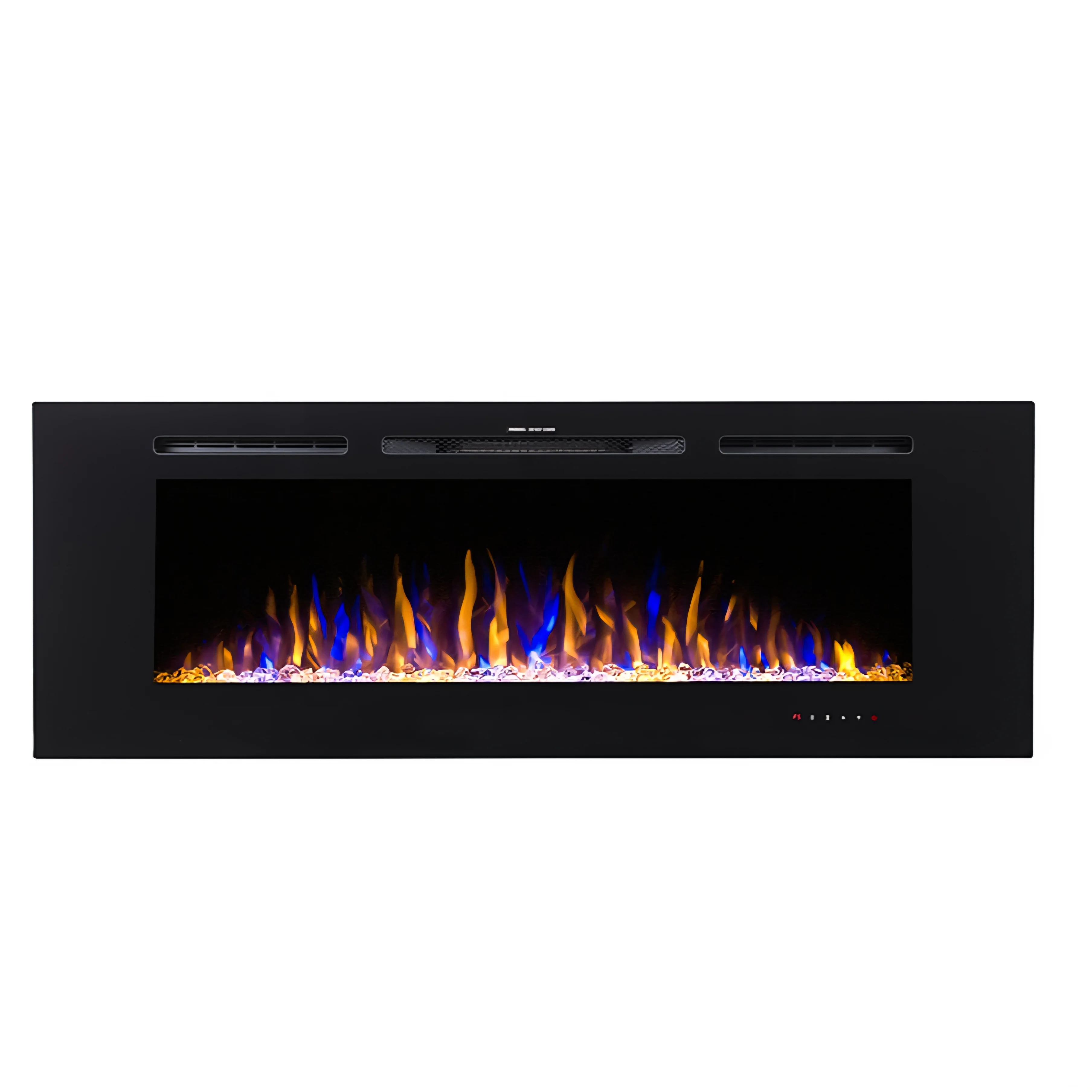 Enhance your interior with this premium 42-inch Electric Fireplace, designed for both modern wall-mounted display and recessed built-in installation. Featuring a stunning mix of logs, crystals, and crushed glass, it creates a realistic and luxurious flame effect suitable for any residential or commercial space.