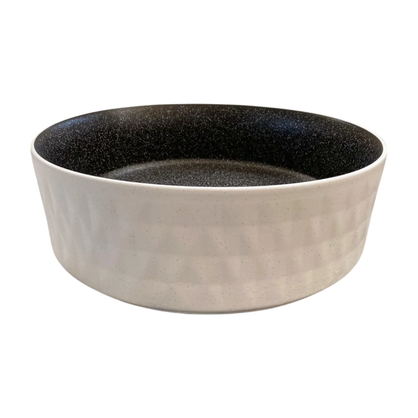 Color: Textured matte white exterior, black speckled interior