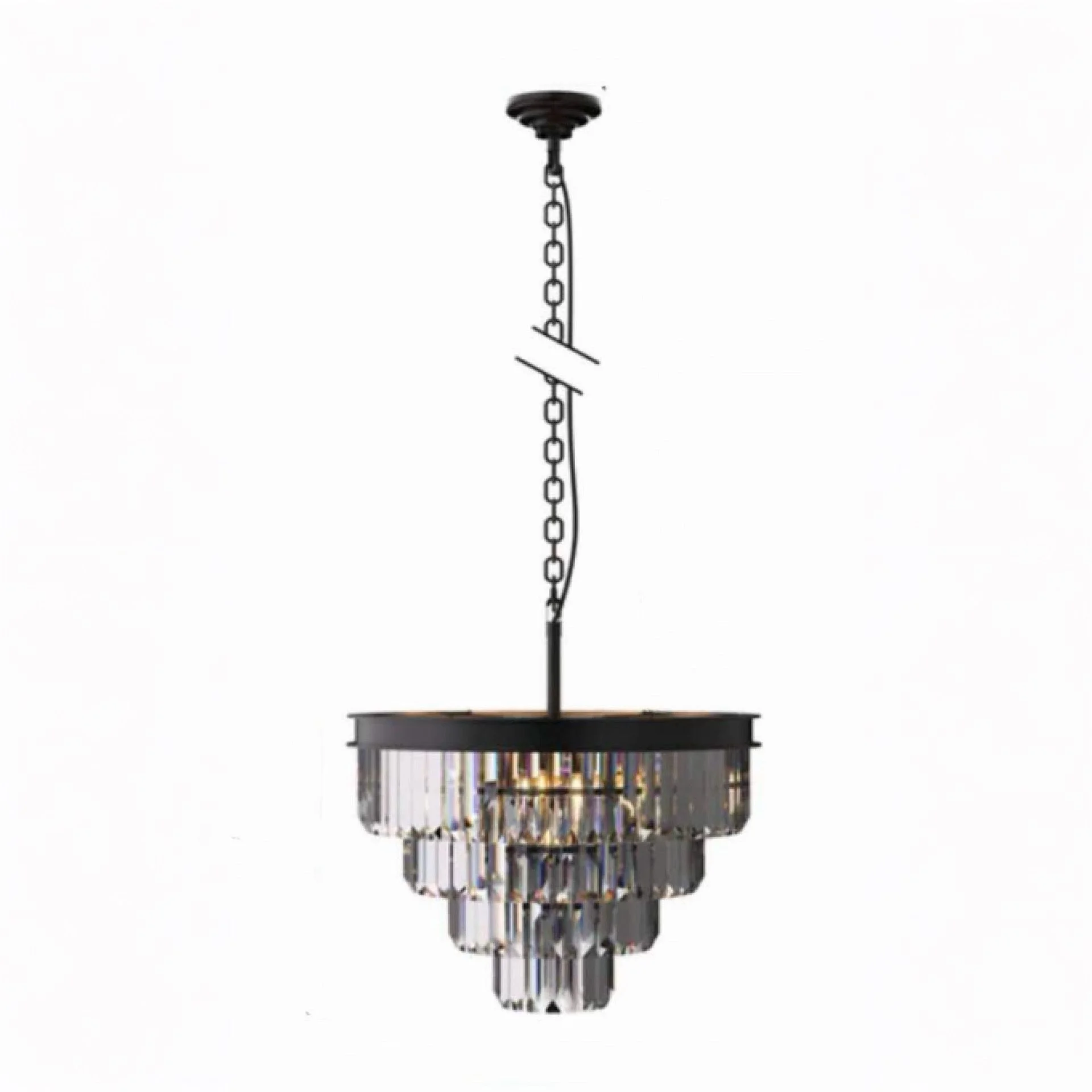 Crafted from durable iron with premium K5 crystal, this chandelier offers both strength and brilliance. The sand black frame contrasts beautifully with the clear crystal, enhancing light reflection and adding a modern luxury touch.